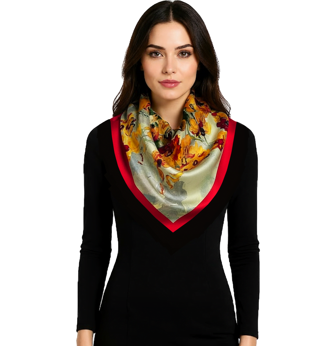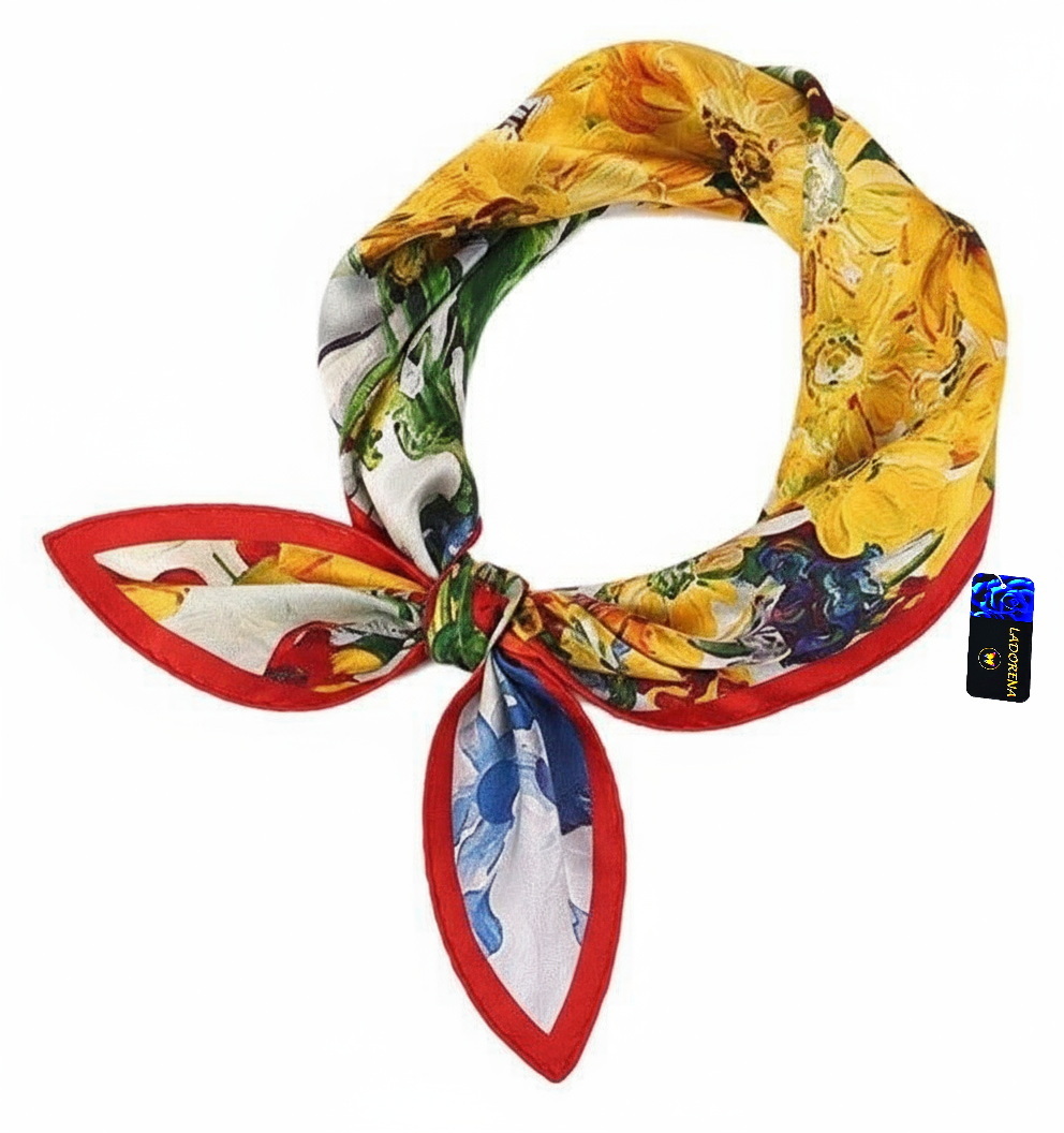 Przepiękna jedwabna apaszka, marki LaDorena® wykonana z najwyższej jakości naturalnej satyny jedwabnej o rzadko dostępnej grubości aż 12 M/m, Wymiary 65x65 cm. Chusta zachwyci każdą elegancką kobietę.
