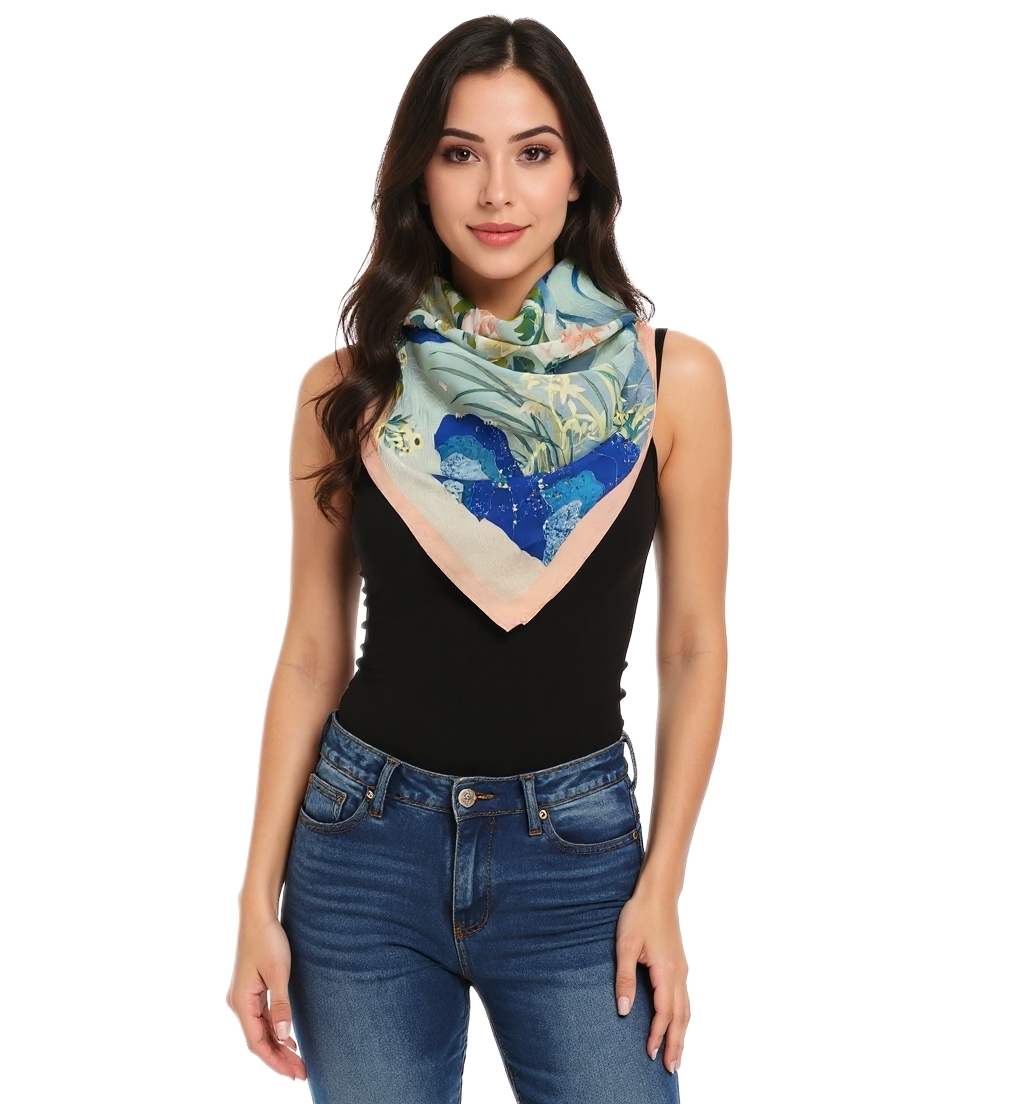 Chusta wykonana z ekologicznych tkanin. Bez sztucznych dodatków. Ręcznie wykańczana i sprawdzana. Znakomita jakość dzięki wysokiej klasy materiałom oraz kontroli jakości na każdym etapie wytwarzania. Tkanina 100% jedwab naturalny najwyższej jakości.