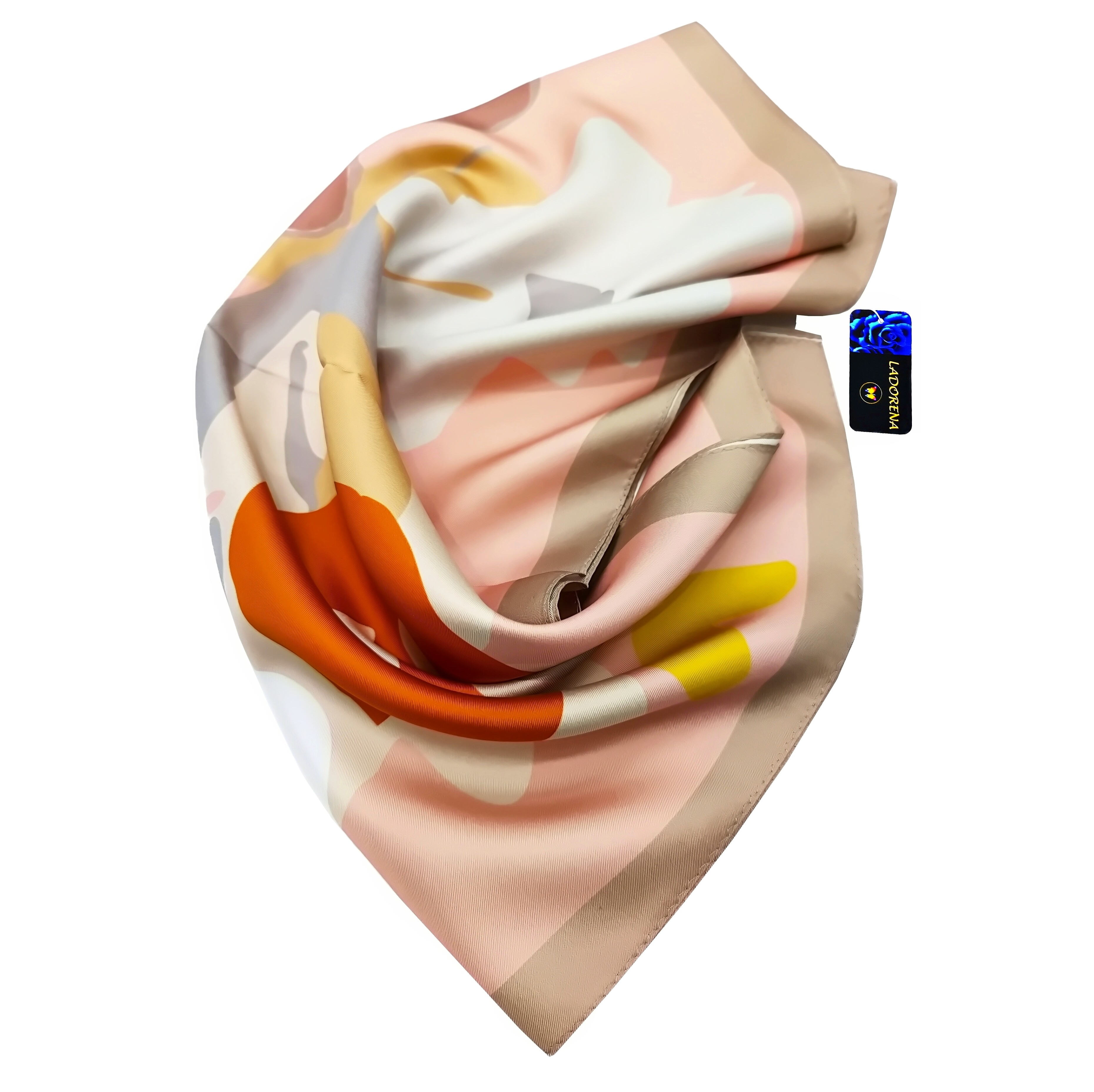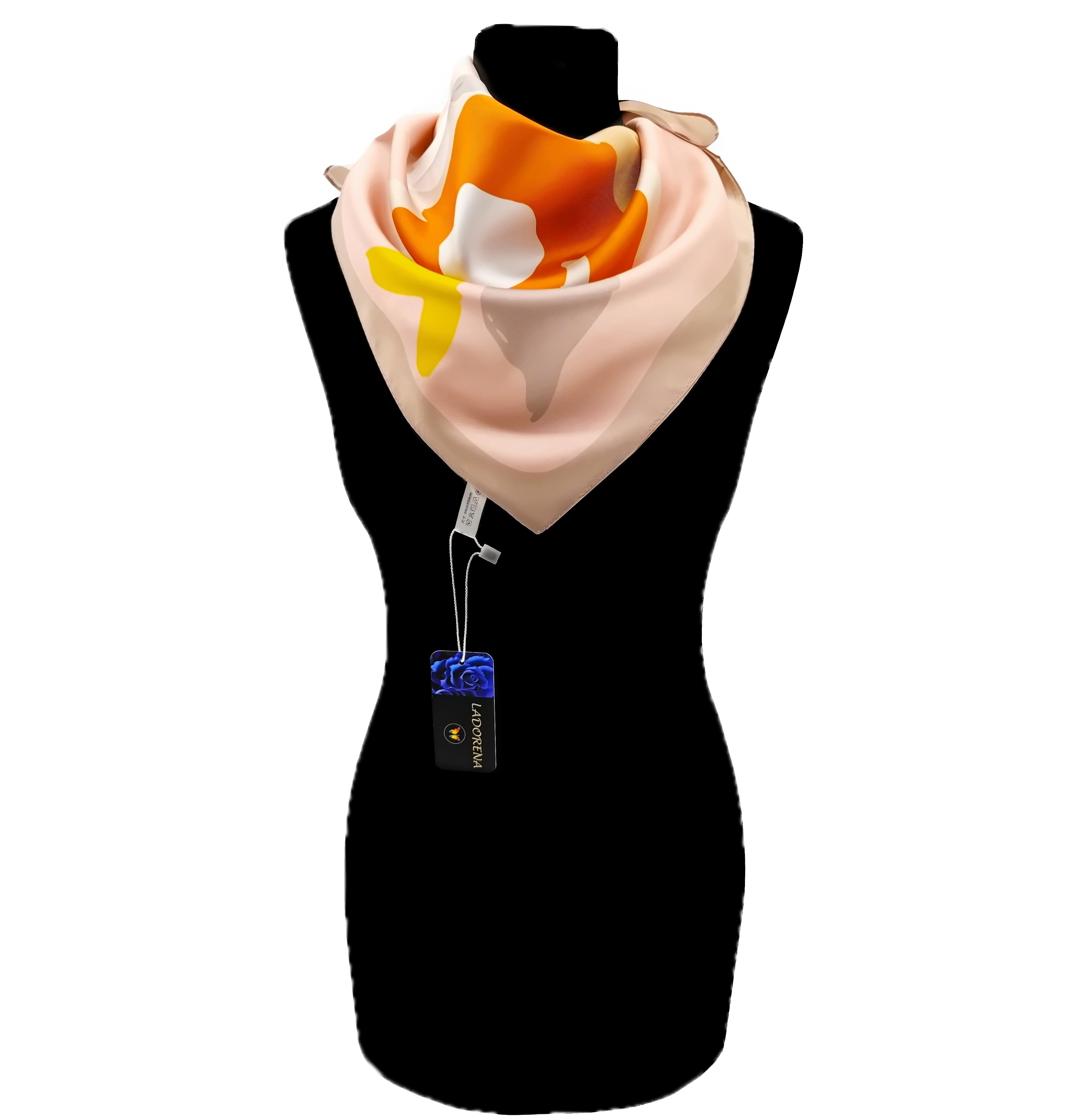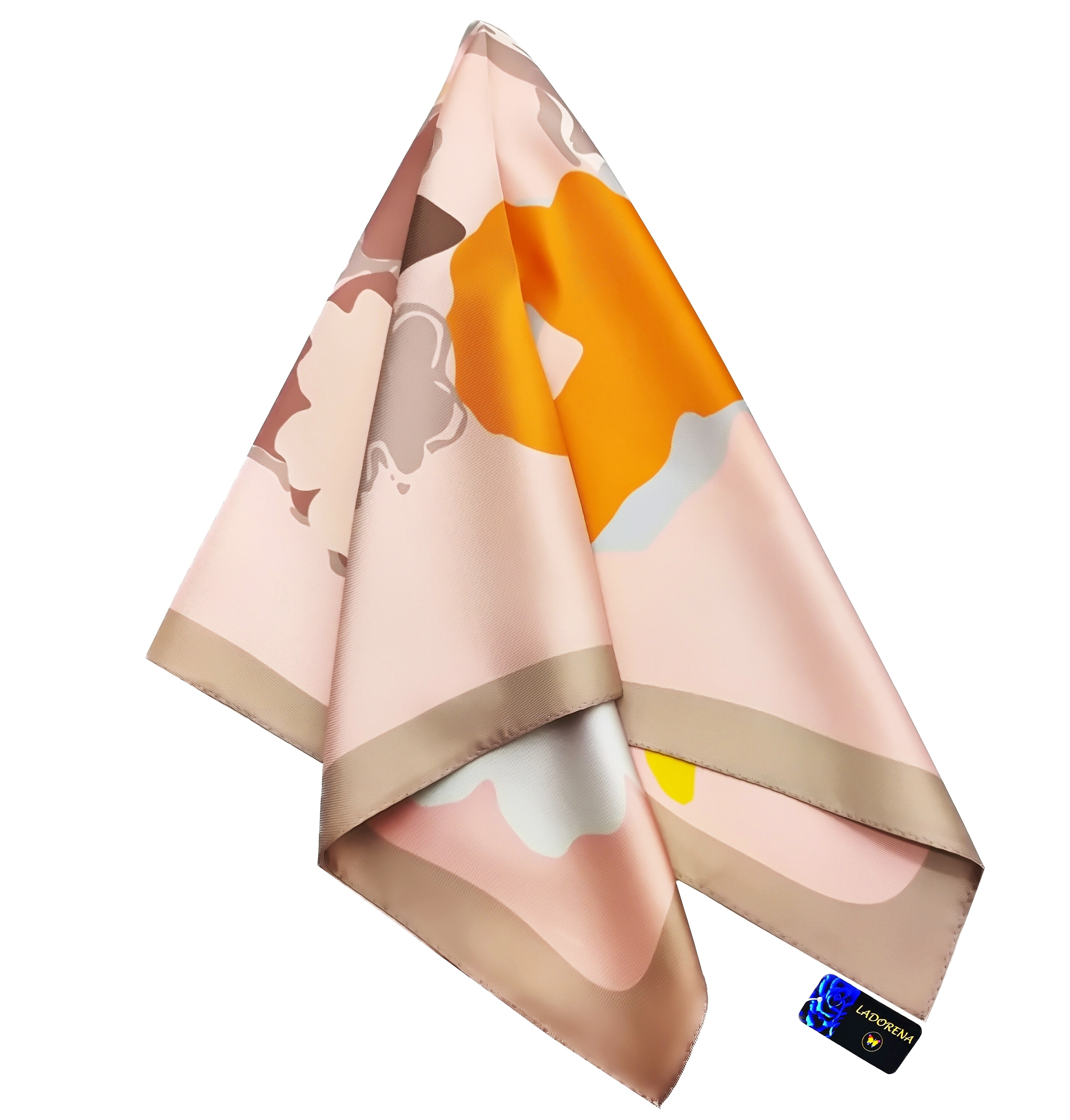 Przepiękna jedwabna apaszka, marki LaDorena® wykonana z najwyższej jakości naturalnej satyny jedwabnej o rzadko dostępnej grubości aż 12 M/m, Wymiary 65x65 cm. Chusta zachwyci każdą elegancką kobietę.