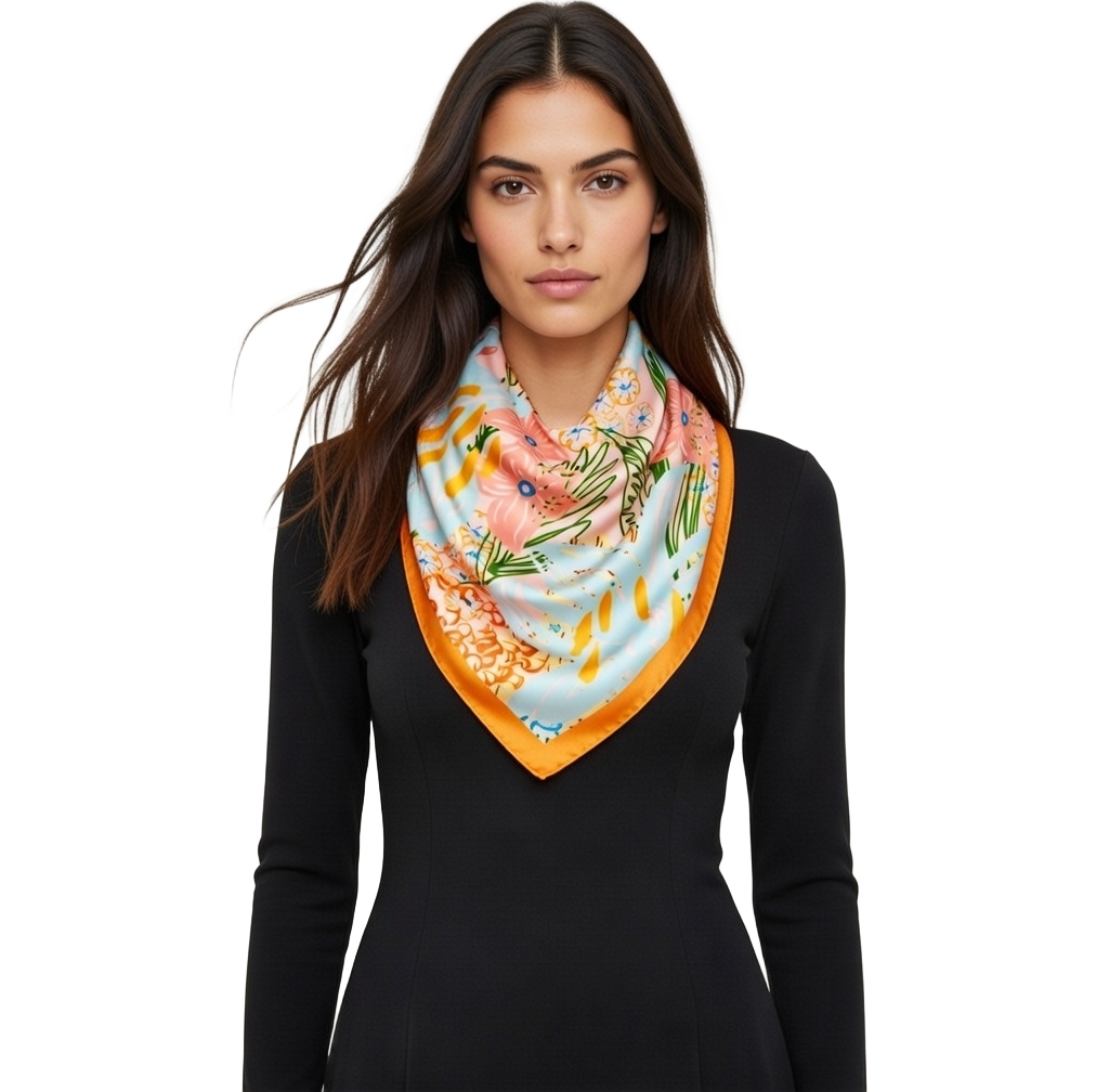 Markowa Chusta Apaszka jedwabna. Jedwab naturalny 100%. Bez syntetyków i szkodliwych dodatków. Znakomita jakość tkanin jak i wykonania.