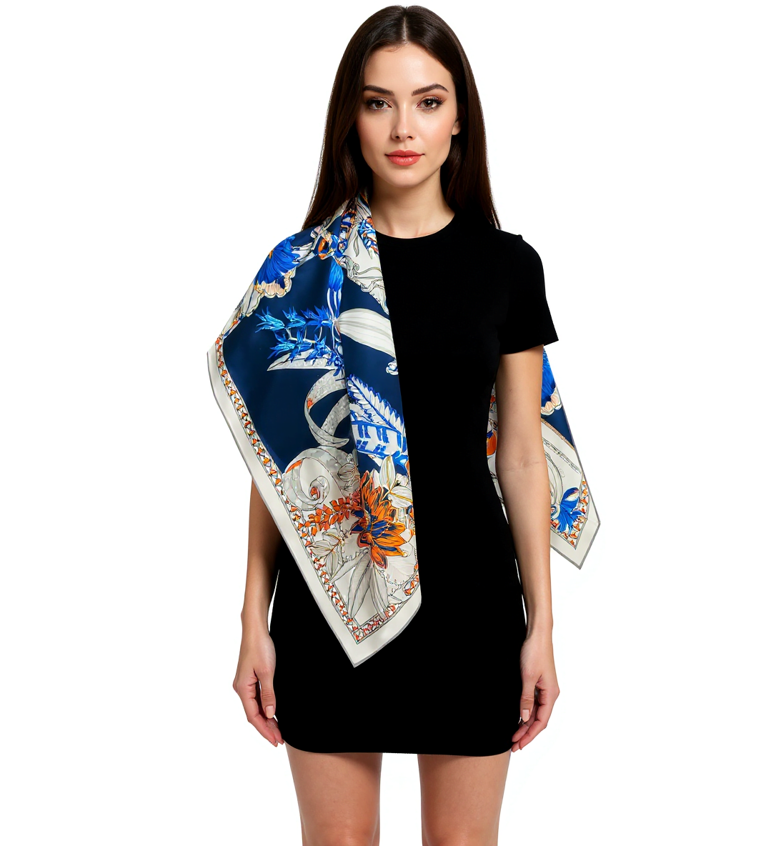 Przepiękna jedwabna chusta, marki LaDorena® wykonana z najwyższej jakości naturalnej ciężkiej satyny jedwabnej o rzadko dostępnej grubości aż 14 M/m, Wymiary 90x90 cm. Chusta zachwyci każdą elegancką kobietę.