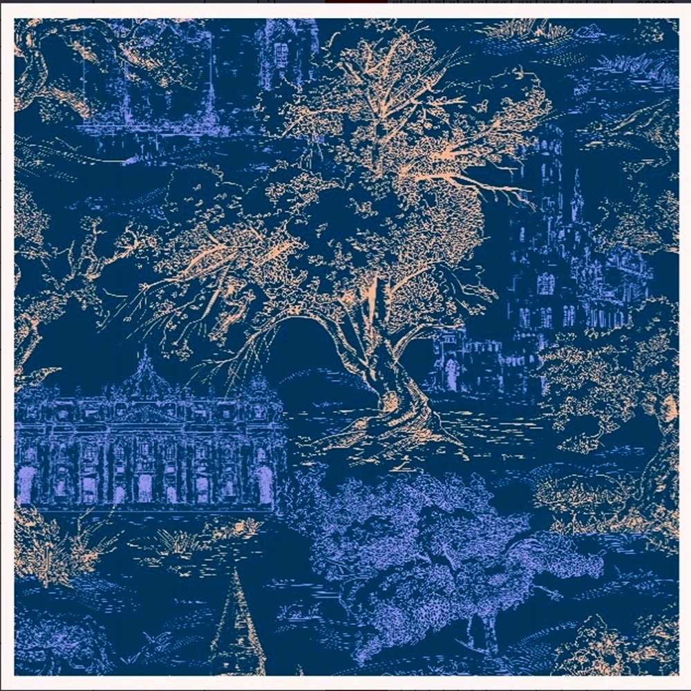 Kolor tkaniny jest opalizujący, jedwabisty, nie ma w sobie sztucznego połysku ani też nie jest matowy, barwy zmieniają się w zależności od oświetlenia.