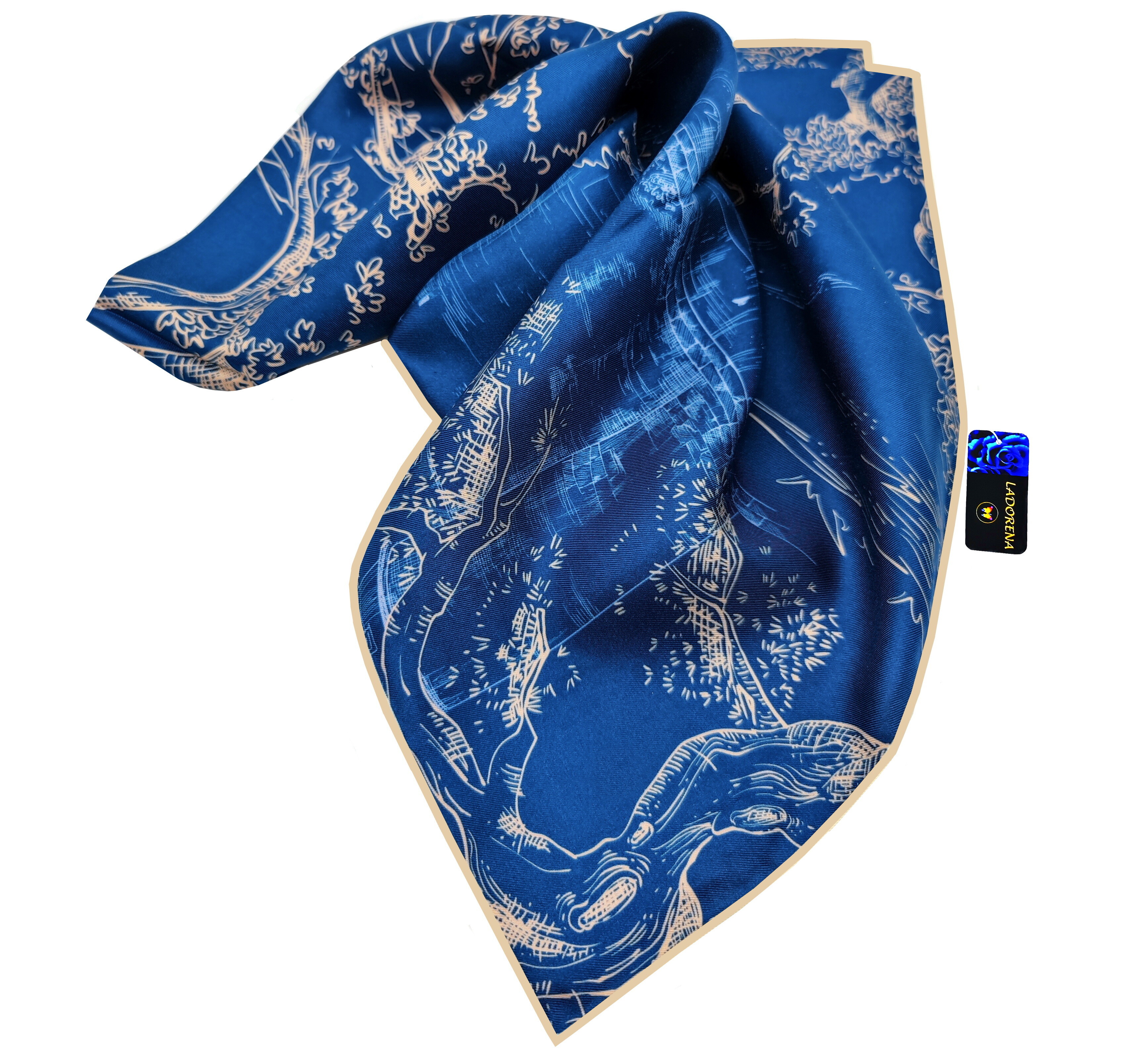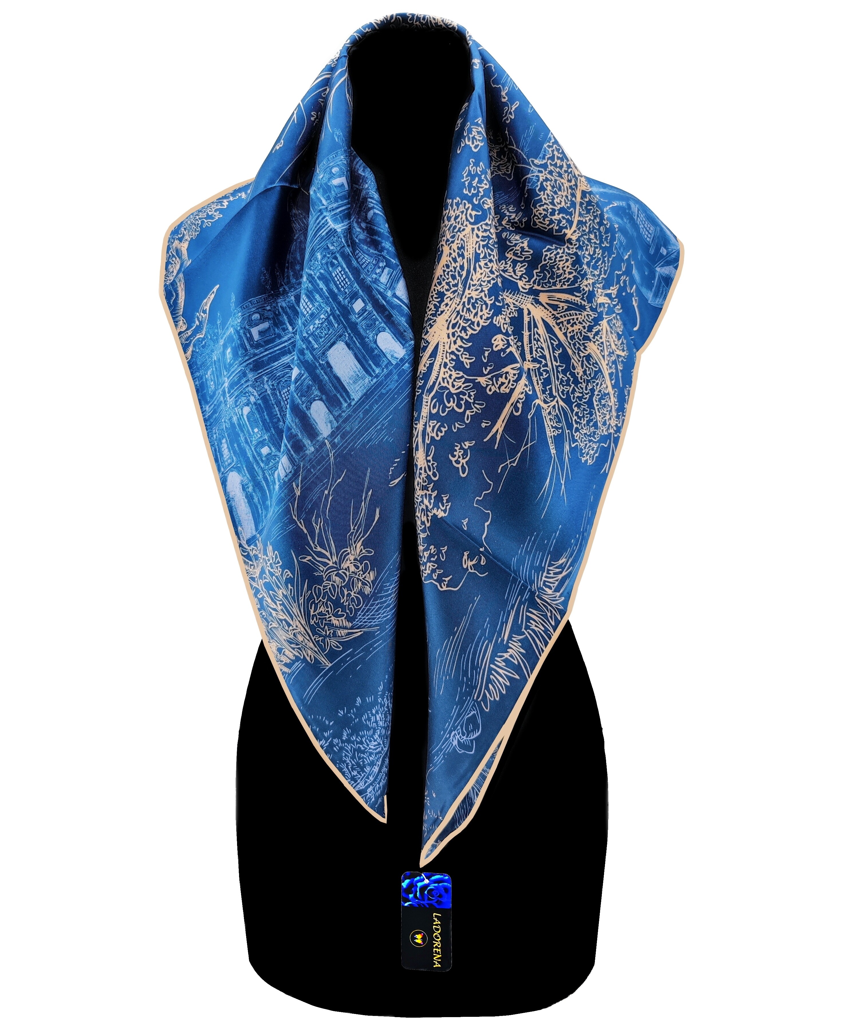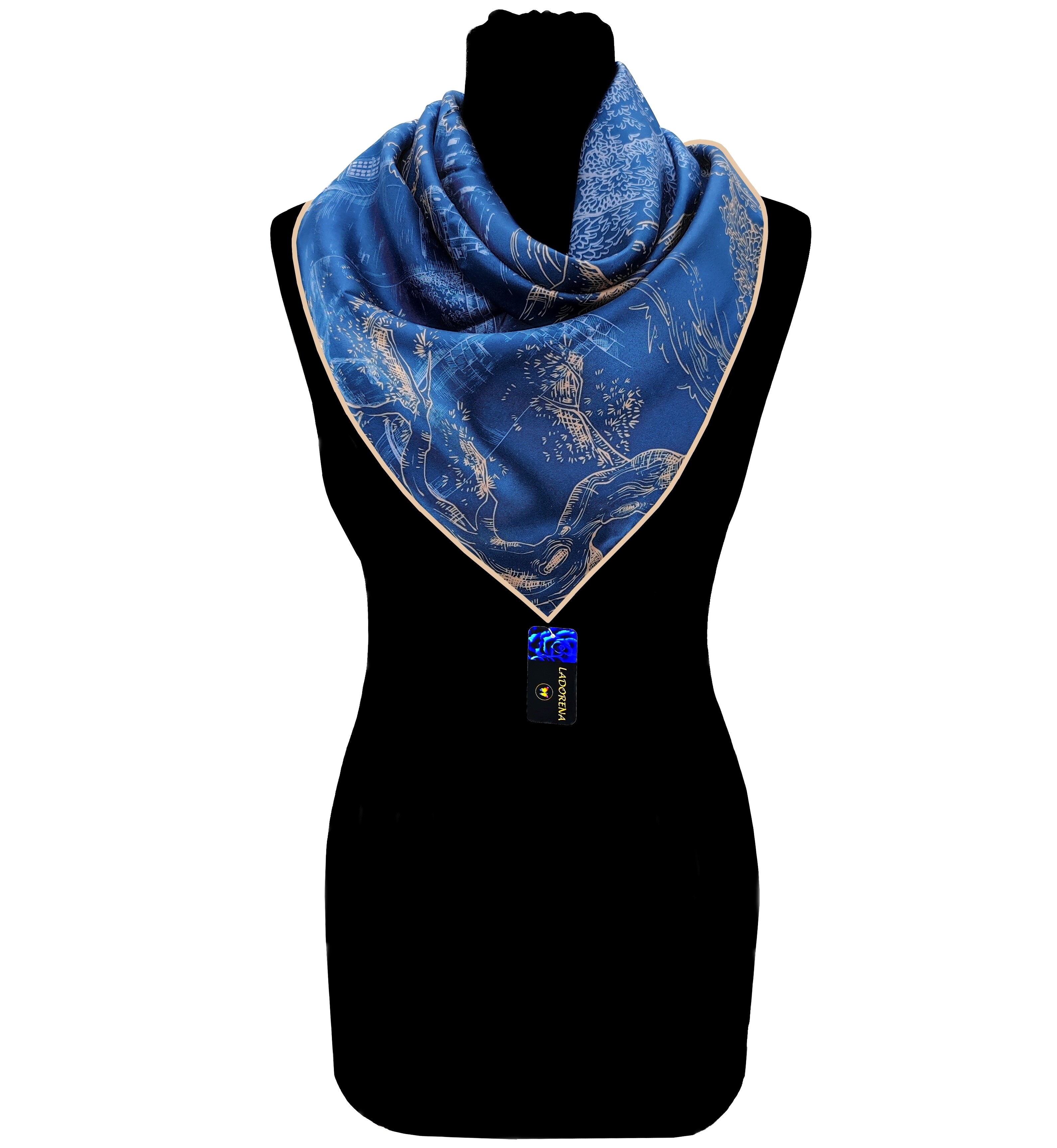 Przepiękna jedwabna chusta, marki LaDorena® wykonana z najwyższej jakości naturalnej ciężkiej satyny jedwabnej o rzadko dostępnej grubości aż 14 M/m, Wymiary 90x90 cm. Chusta zachwyci każdą elegancką kobietę.