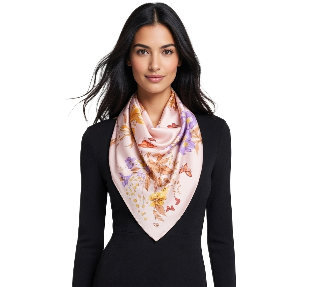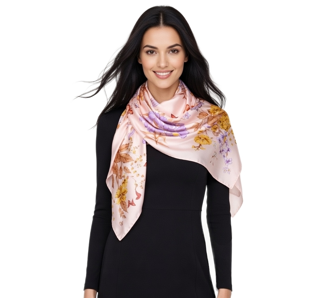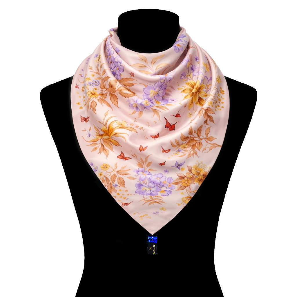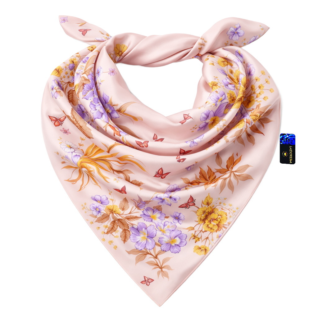 Przepiękna jedwabna chusta, marki LaDorena® wykonana z najwyższej jakości naturalnej ciężkiej satyny jedwabnej o rzadko dostępnej grubości aż 14 M/m, Wymiary 90x90 cm. Chusta zachwyci każdą elegancką kobietę.