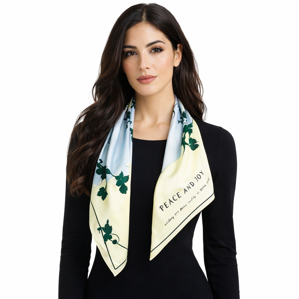 Przepiękna jedwabna chusta, marki LaDorena® wykonana z najwyższej jakości naturalnej ciężkiej satyny jedwabnej o rzadko dostępnej grubości aż 14 M/m, Wymiary 90x90 cm. Chusta zachwyci każdą elegancką kobietę.