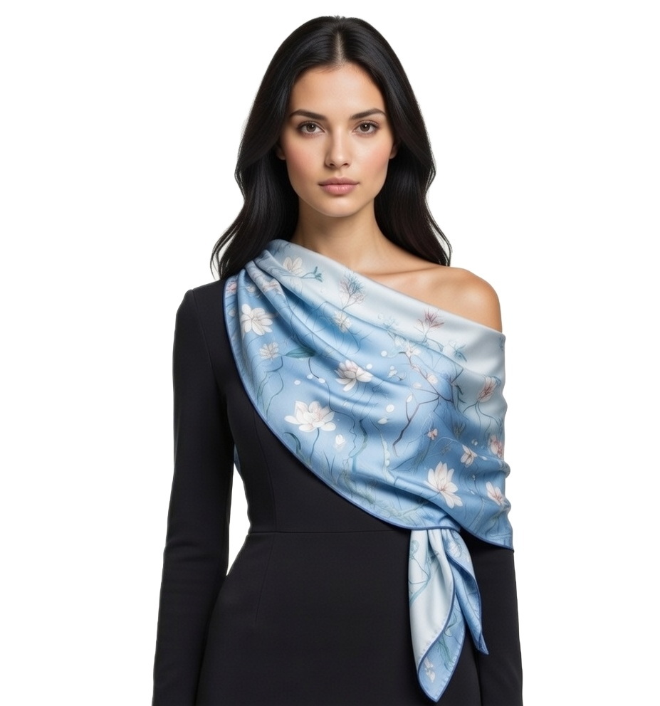 Chusta wykonana z ekologicznych tkanin. Bez sztucznych dodatków. Ręcznie wykańczana i sprawdzana. Znakomita jakość dzięki wysokiej klasy materiałom oraz kontroli jakości na każdym etapie wytwarzania. Tkanina 100% jedwab naturalny najwyższej jakości.