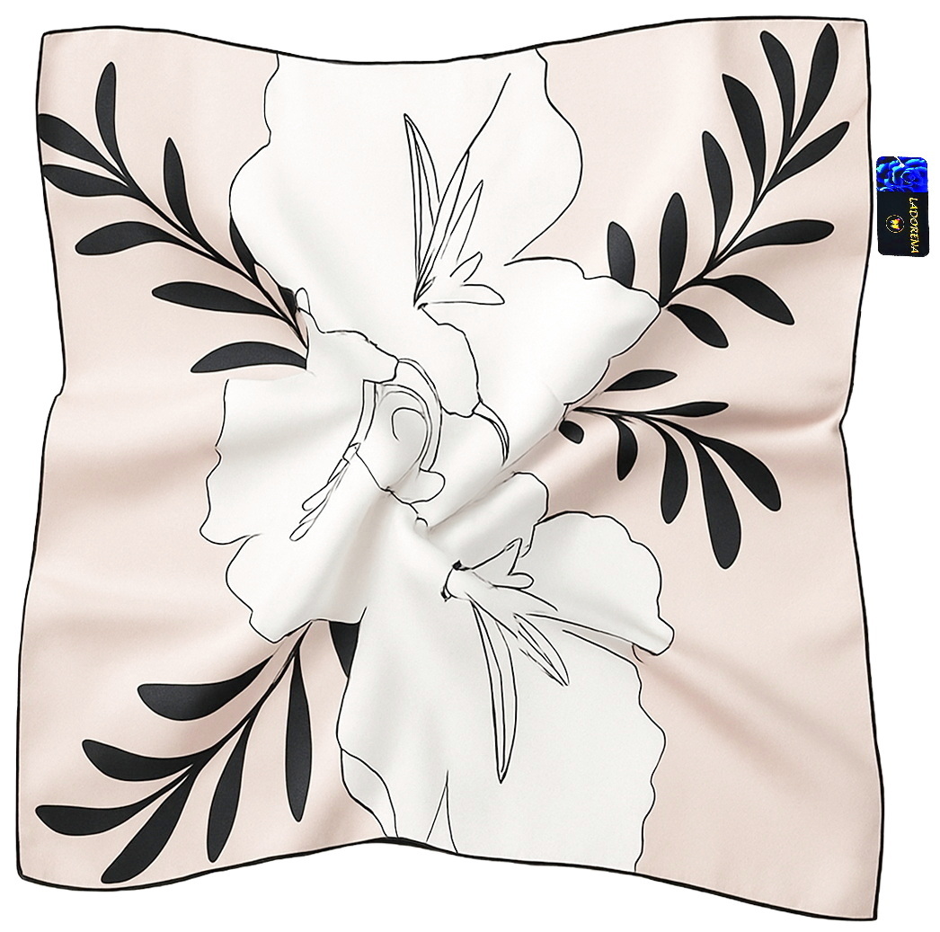 Przepiękna jedwabna chusta, marki LaDorena® wykonana z najwyższej jakości naturalnej ciężkiej satyny jedwabnej o rzadko dostępnej grubości aż 14 M/m, Wymiary 90x90 cm. Chusta zachwyci każdą elegancką kobietę.