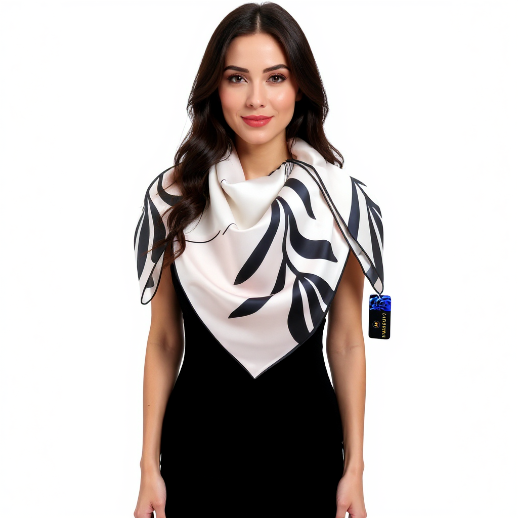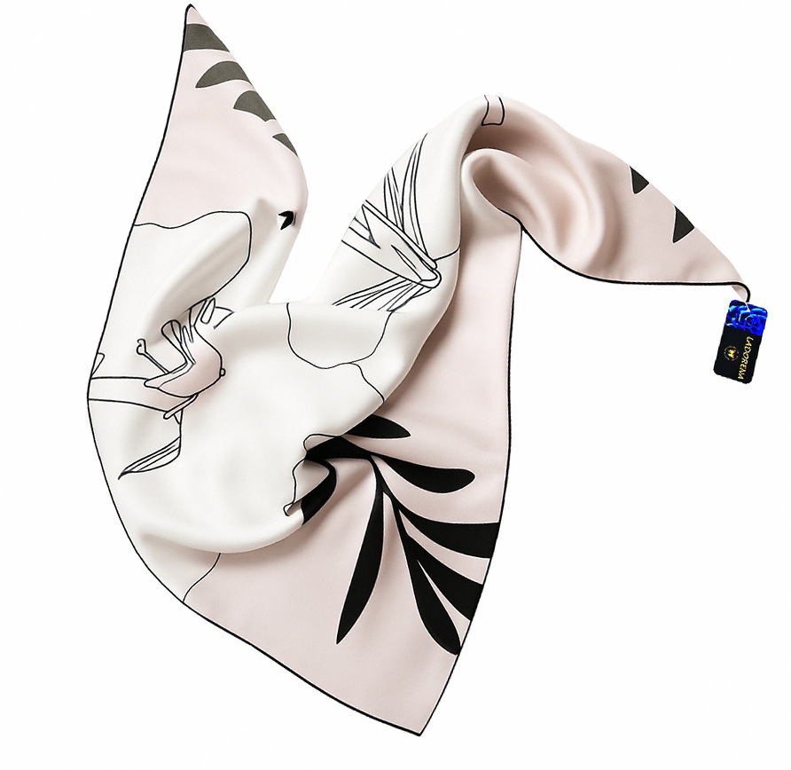 Przepiękna jedwabna chusta, marki LaDorena® wykonana z najwyższej jakości naturalnej ciężkiej satyny jedwabnej o rzadko dostępnej grubości aż 14 M/m, Wymiary 90x90 cm. Chusta zachwyci każdą elegancką kobietę.