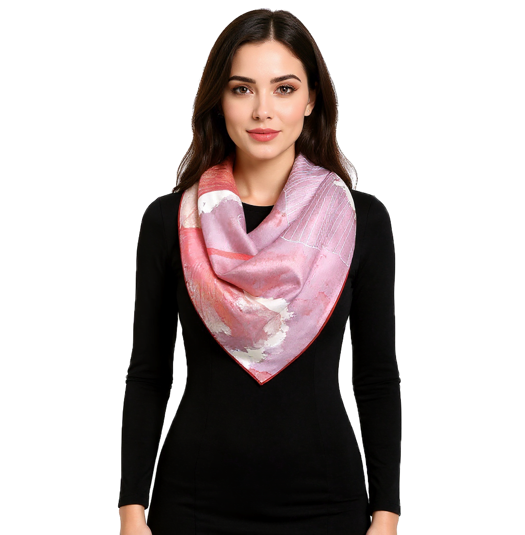 Przepiękna jedwabna chusta, marki LaDorena® wykonana z najwyższej jakości naturalnej ciężkiej satyny jedwabnej o rzadko dostępnej grubości aż 14 M/m, Wymiary 90x90 cm. Chusta zachwyci każdą elegancką kobietę.