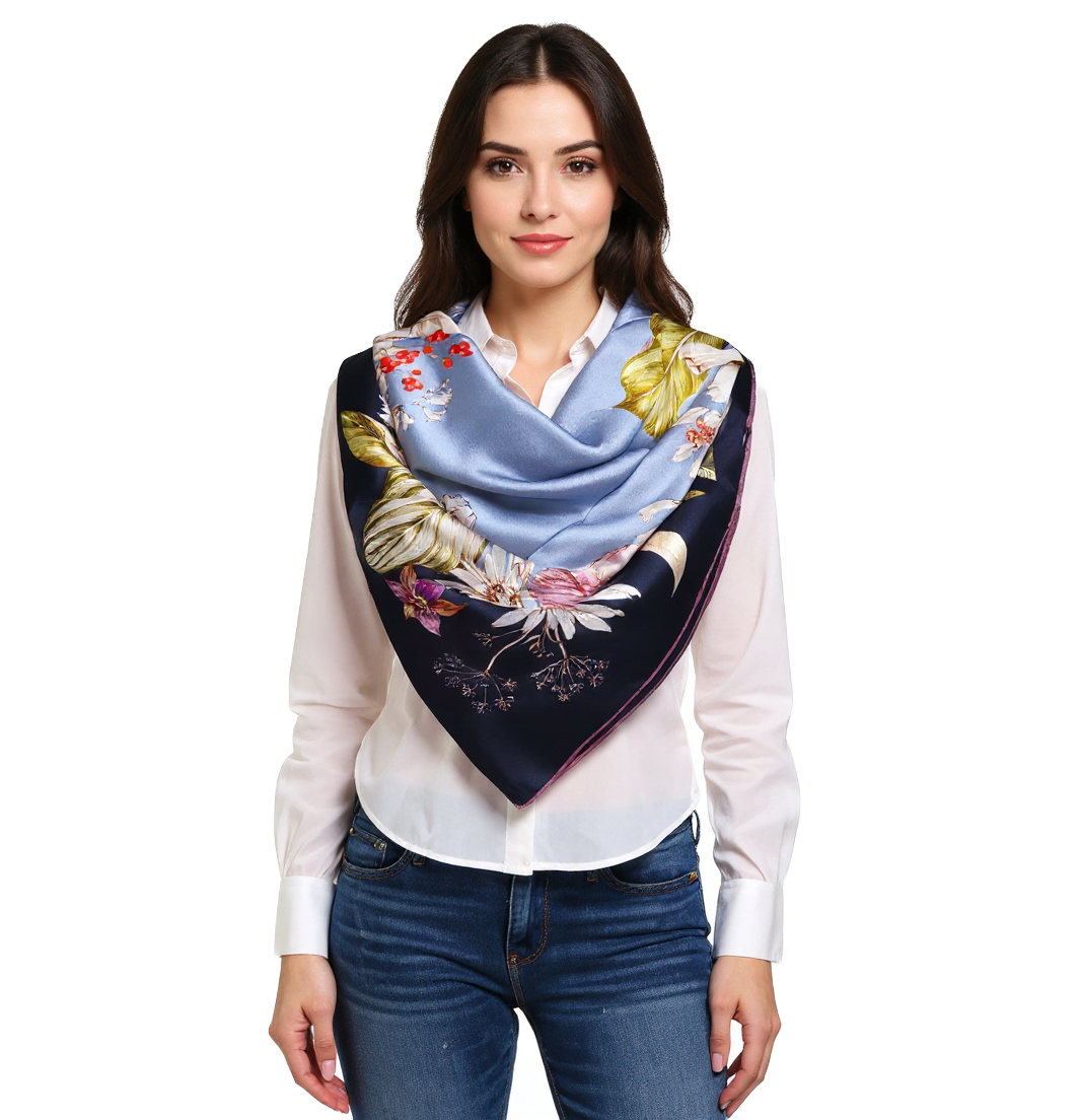 Przepiękna jedwabna chusta, marki LaDorena® wykonana z najwyższej jakości naturalnej ciężkiej satyny jedwabnej o rzadko dostępnej grubości aż 14 M/m, Wymiary 90x90 cm. Chusta zachwyci każdą elegancką kobietę.