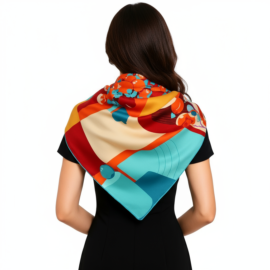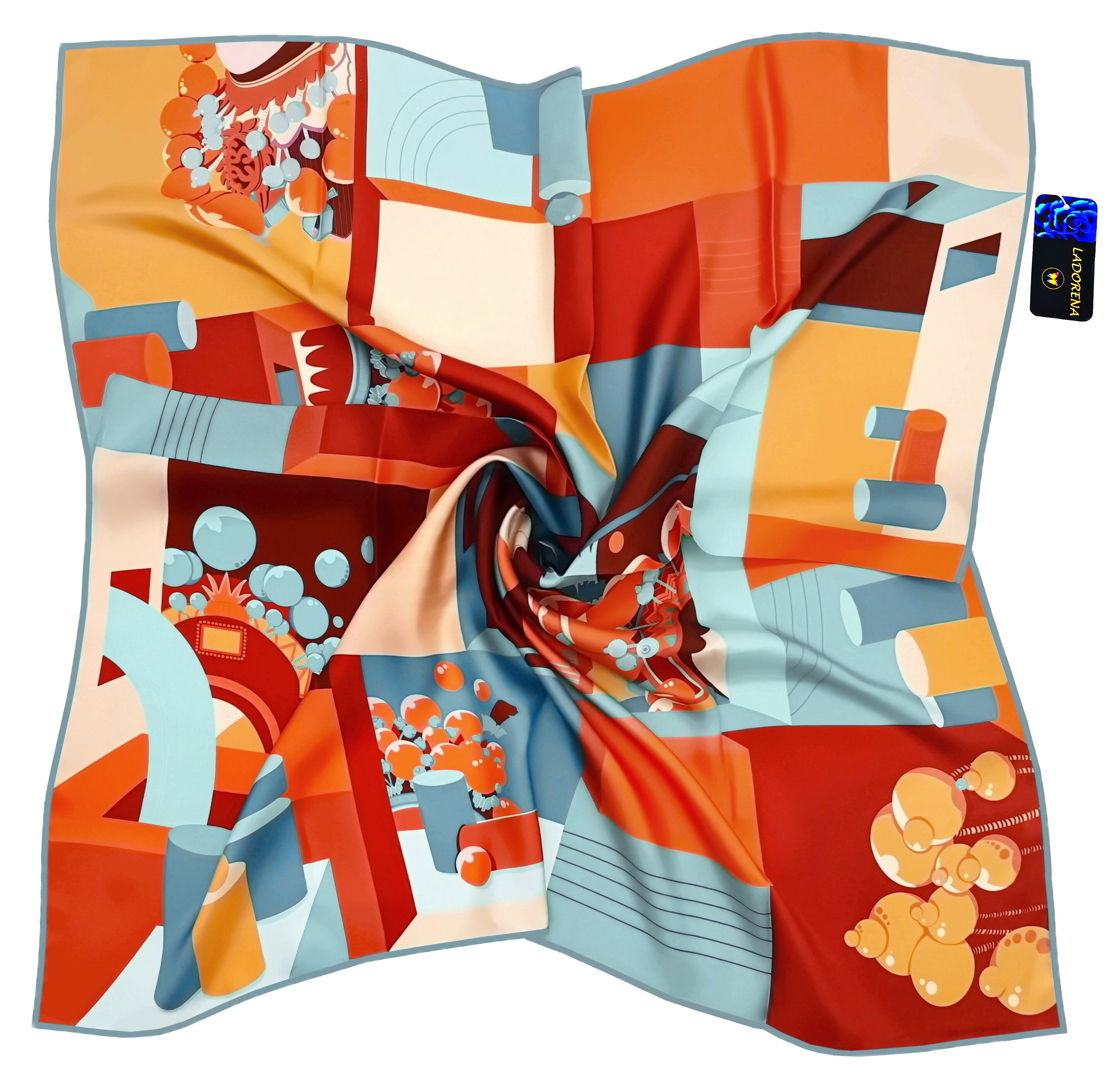 Przepiękna jedwabna chusta, marki LaDorena® wykonana z najwyższej jakości naturalnej ciężkiej satyny jedwabnej o rzadko dostępnej grubości aż 14 M/m, Wymiary 90x90 cm. Chusta zachwyci każdą elegancką kobietę.