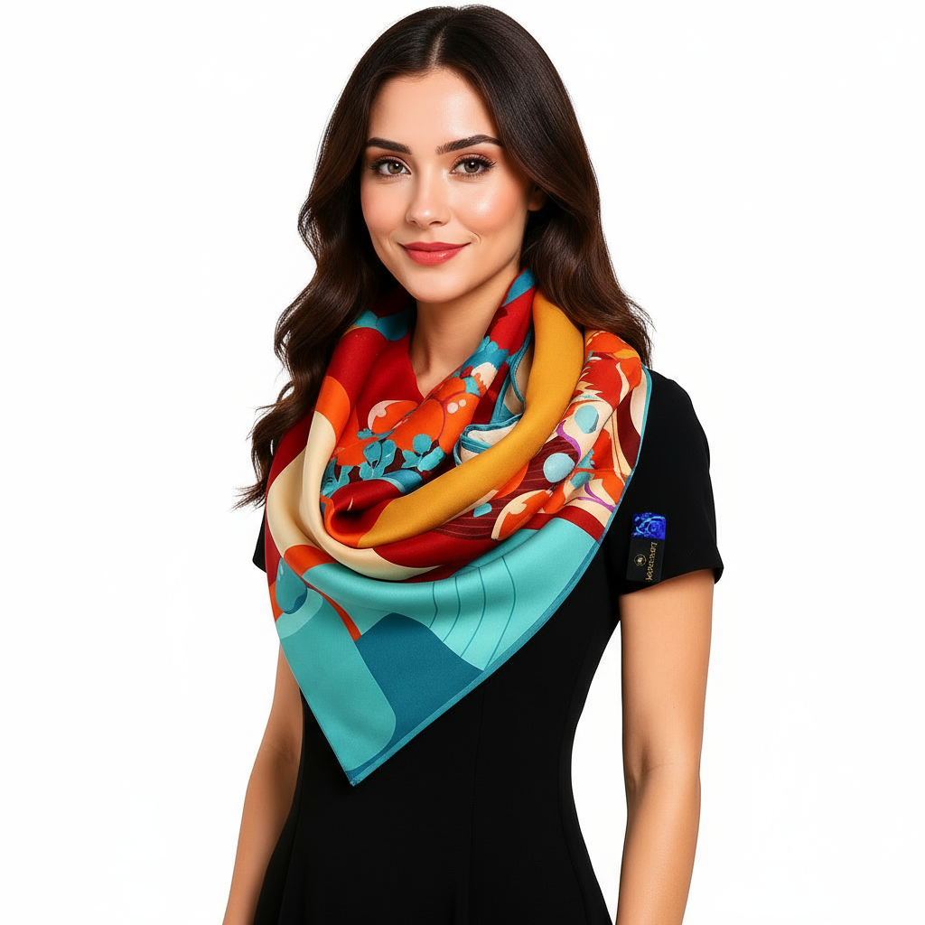 Markowa Chusta Apaszka jedwabna. Jedwab naturalny 100%. Bez syntetyków i szkodliwych dodatków. Znakomita jakość tkanin jak i wykonania.