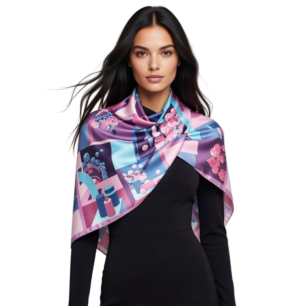 Przepiękna jedwabna chusta, marki LaDorena® wykonana z najwyższej jakości naturalnej ciężkiej satyny jedwabnej o rzadko dostępnej grubości aż 14 M/m, Wymiary 90x90 cm. Chusta zachwyci każdą elegancką kobietę.
