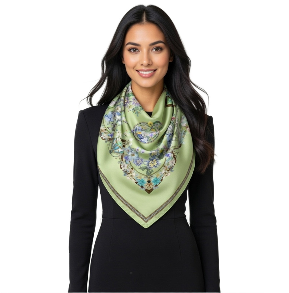 Przepiękna jedwabna chusta, marki LaDorena® wykonana z najwyższej jakości naturalnej ciężkiej satyny jedwabnej o rzadko dostępnej grubości aż 14 M/m, Wymiary 90x90 cm. Chusta zachwyci każdą elegancką kobietę.