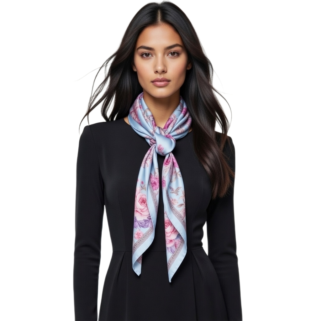 Przepiękna jedwabna chusta, marki LaDorena® wykonana z najwyższej jakości naturalnej ciężkiej satyny jedwabnej o rzadko dostępnej grubości aż 14 M/m, Wymiary 90x90 cm. Chusta zachwyci każdą elegancką kobietę.