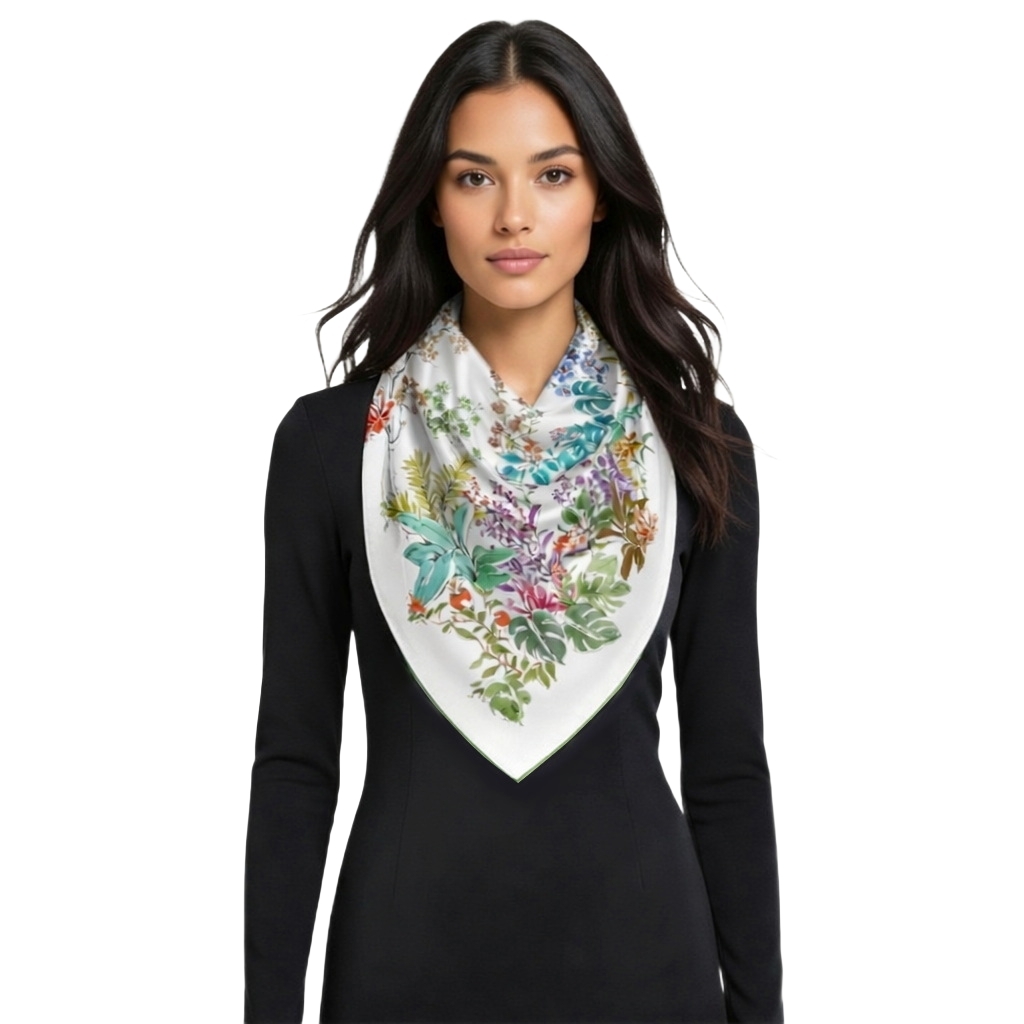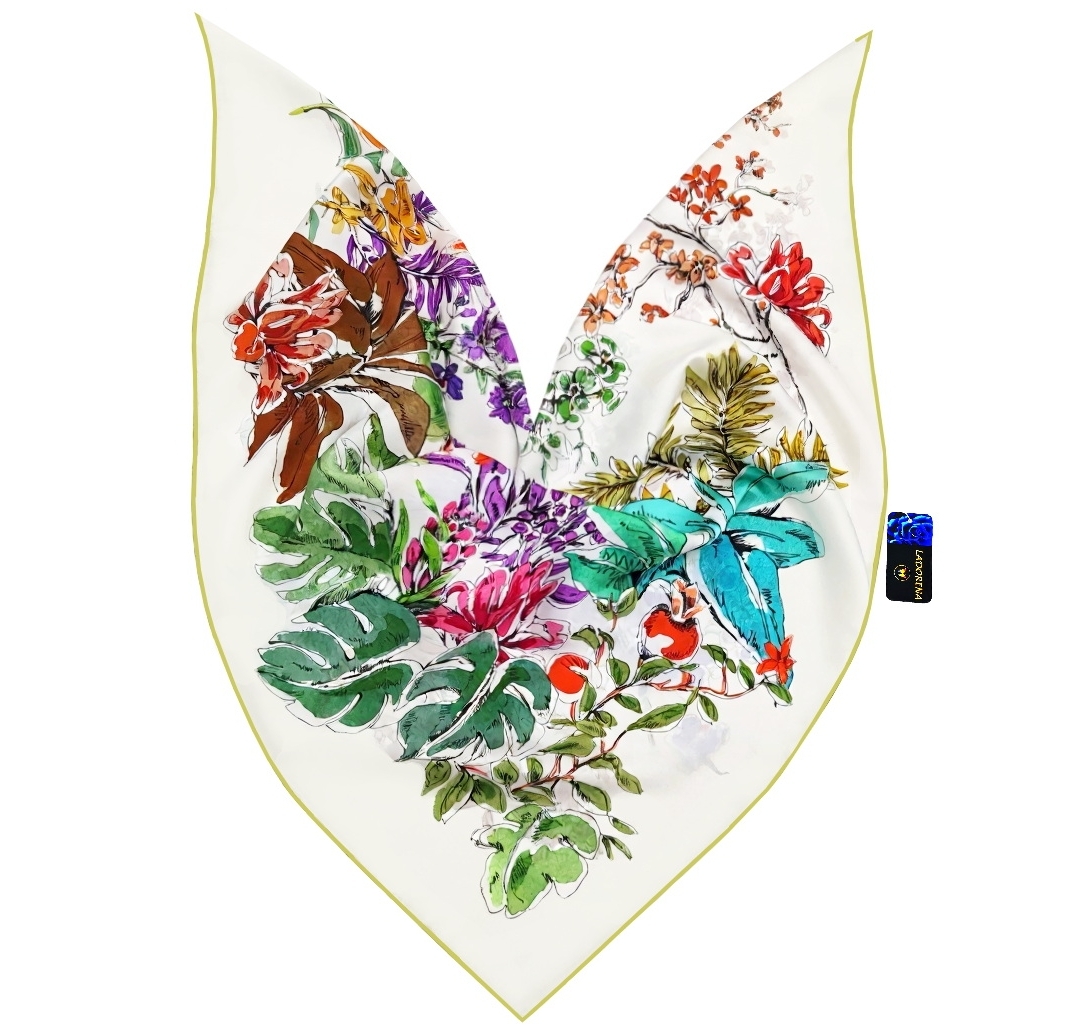 Chusta wykonana z ekologicznych tkanin. Bez sztucznych dodatków. Ręcznie wykańczana i sprawdzana. Znakomita jakość dzięki wysokiej klasy materiałom oraz kontroli jakości na każdym etapie wytwarzania. Tkanina 100% jedwab naturalny najwyższej jakości.