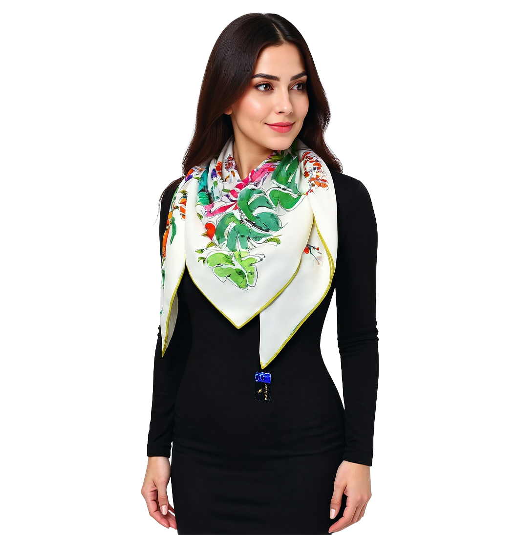 Chusta wykonana z ekologicznych tkanin. Bez sztucznych dodatków. Ręcznie wykańczana i sprawdzana. Znakomita jakość dzięki wysokiej klasy materiałom oraz kontroli jakości na każdym etapie wytwarzania. Tkanina 100% jedwab naturalny najwyższej jakości.
