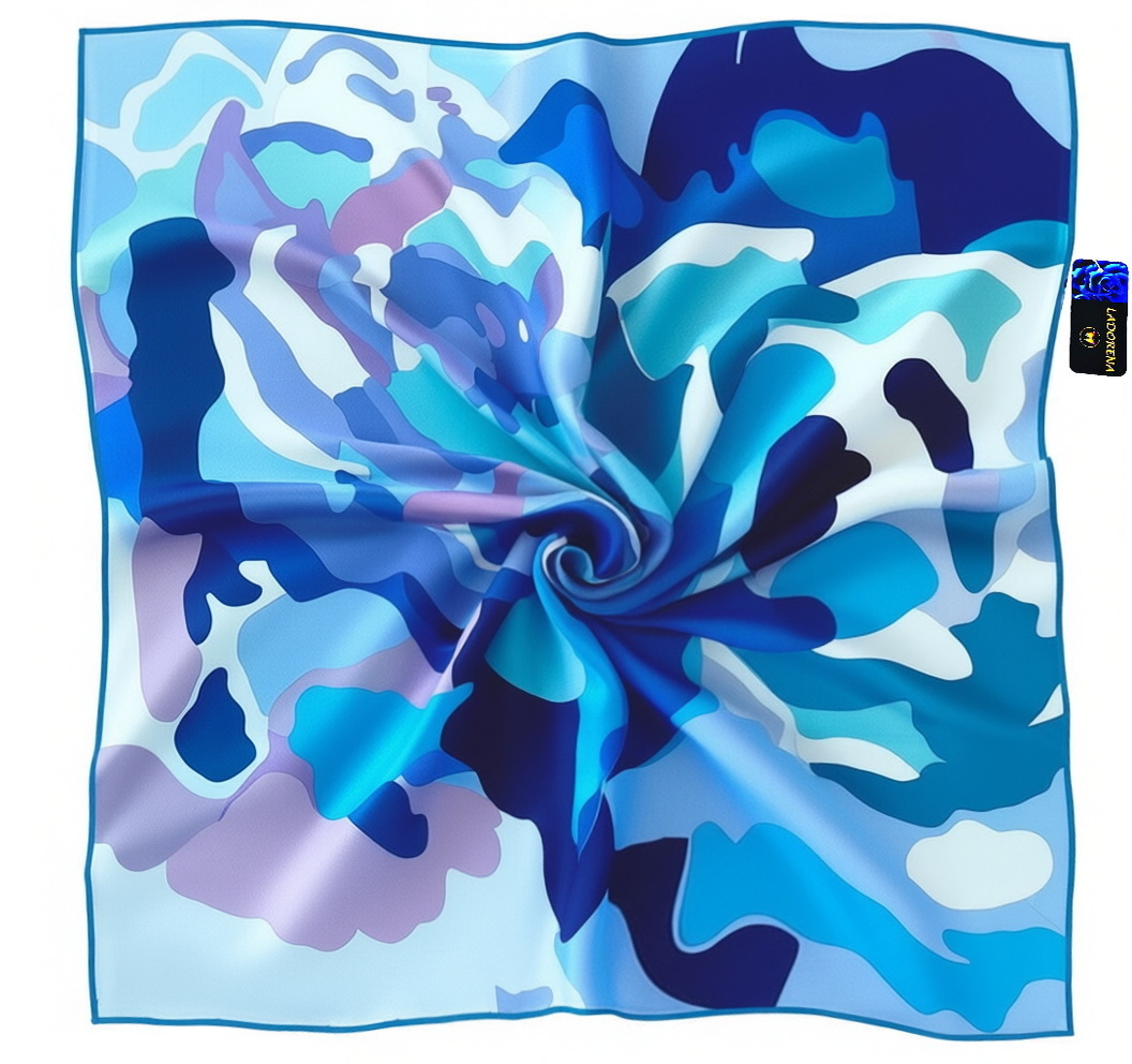 Przepiękna jedwabna chusta, marki LaDorena® wykonana z najwyższej jakości naturalnej ciężkiej satyny jedwabnej o rzadko dostępnej grubości aż 14 M/m, Wymiary 90x90 cm. Chusta zachwyci każdą elegancką kobietę.