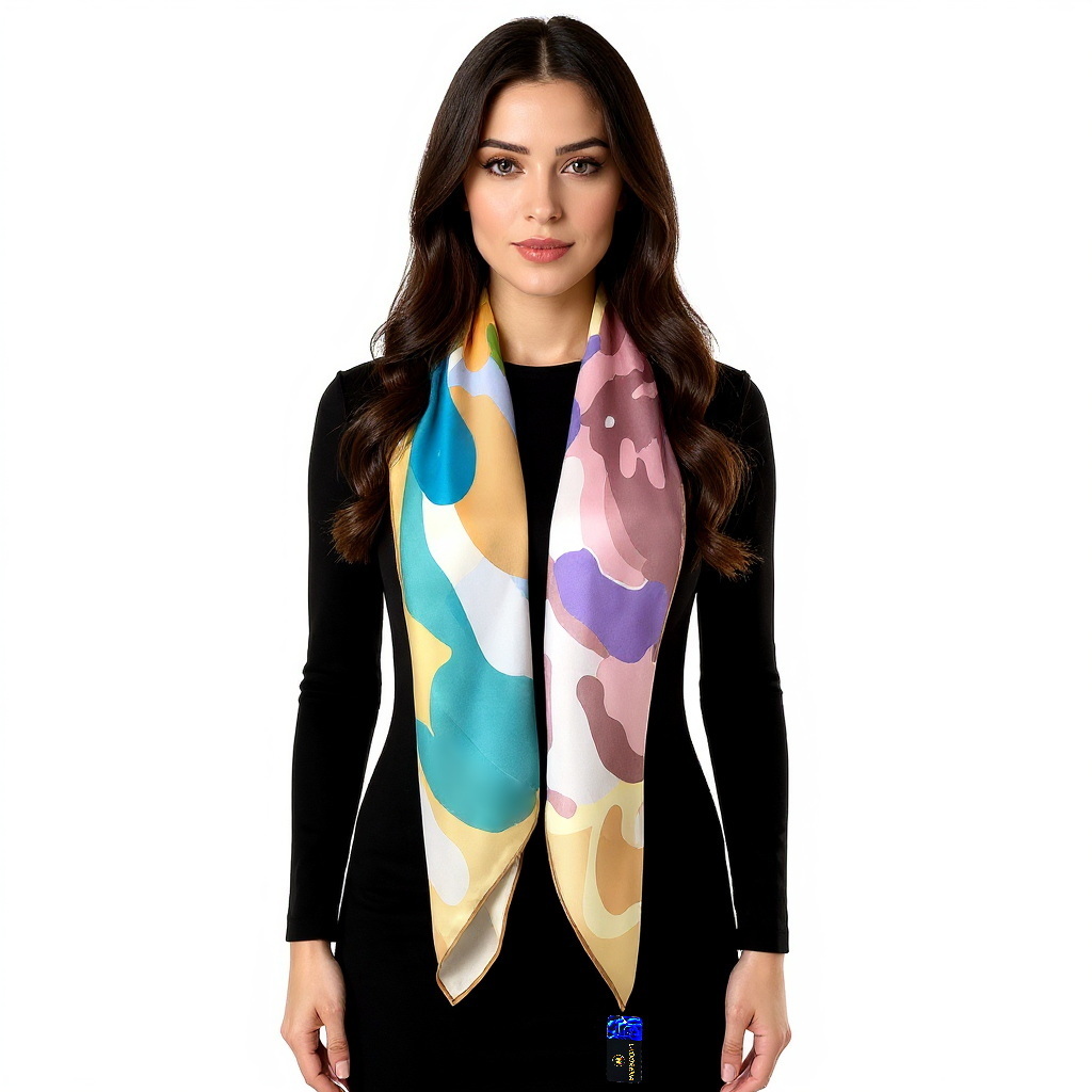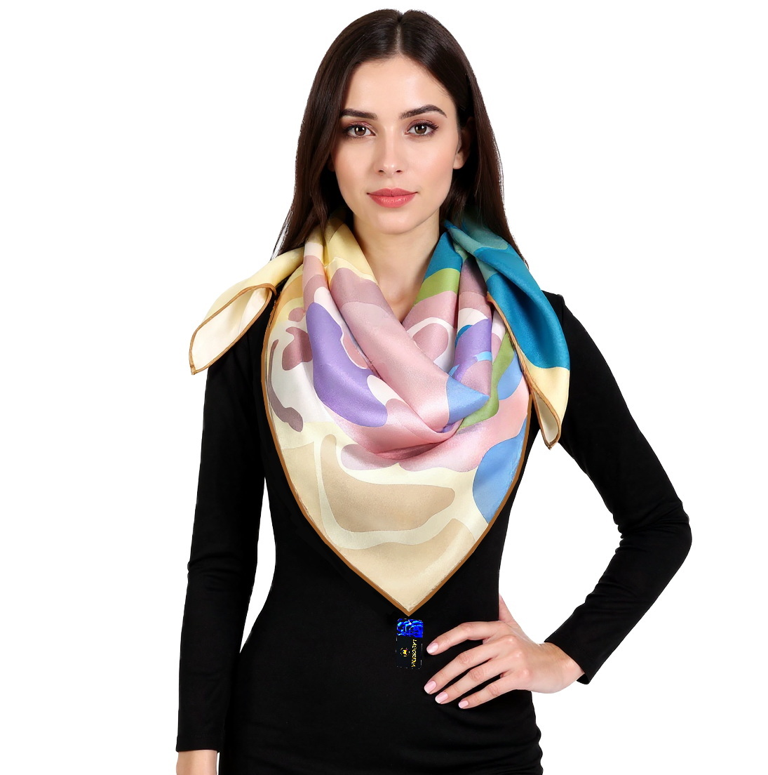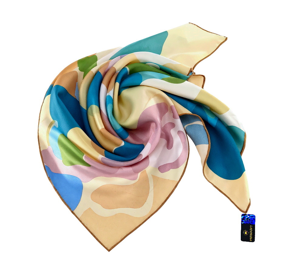 Przepiękna jedwabna chusta, marki LaDorena® wykonana z najwyższej jakości naturalnej ciężkiej satyny jedwabnej o rzadko dostępnej grubości aż 14 M/m, Wymiary 90x90 cm. Chusta zachwyci każdą elegancką kobietę.