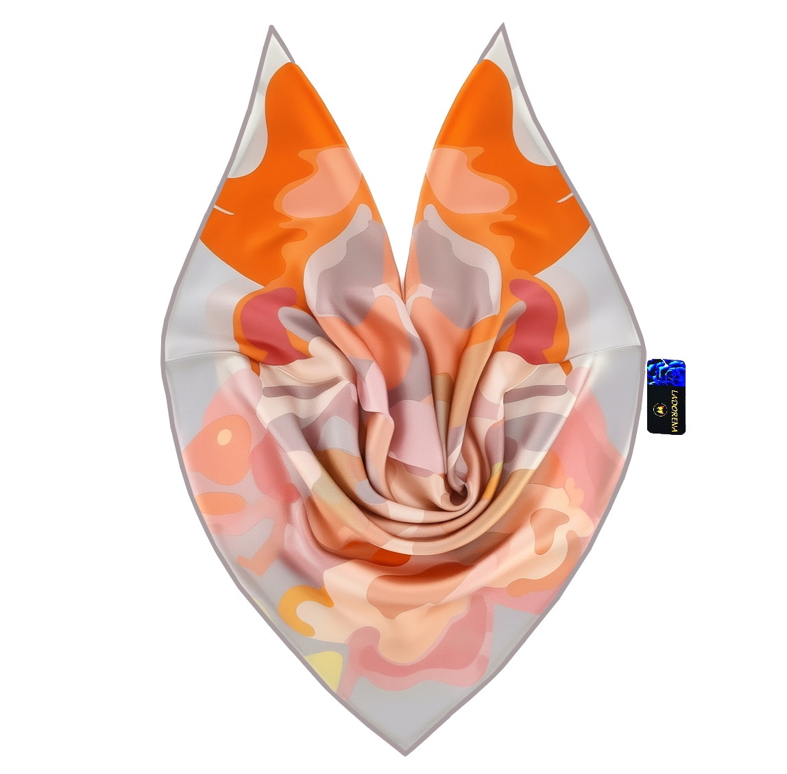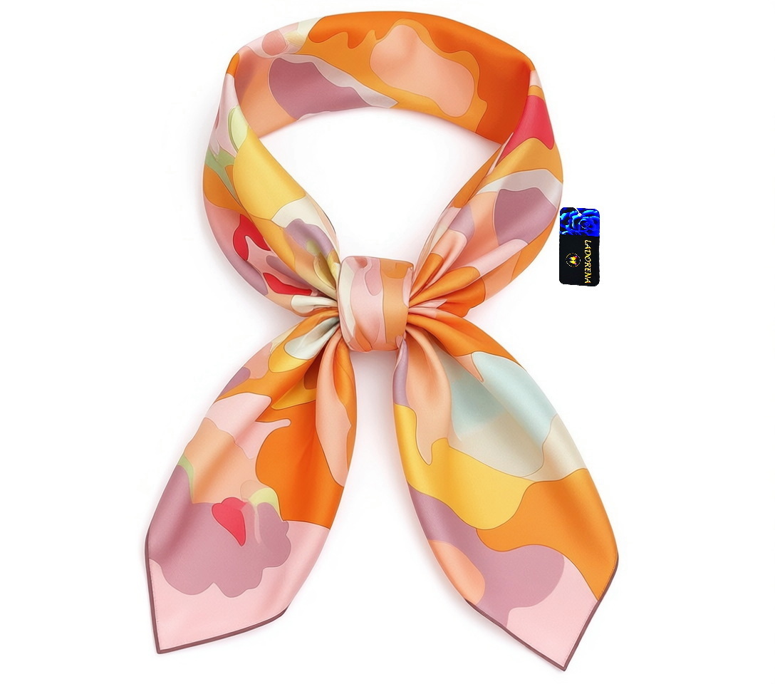 rzepiękna jedwabna chusta, marki LaDorena® wykonana z najwyższej jakości naturalnej ciężkiej satyny jedwabnej o rzadko dostępnej grubości aż 14 M/m, Wymiary 90x90 cm. Chusta zachwyci każdą elegancką kobietę.