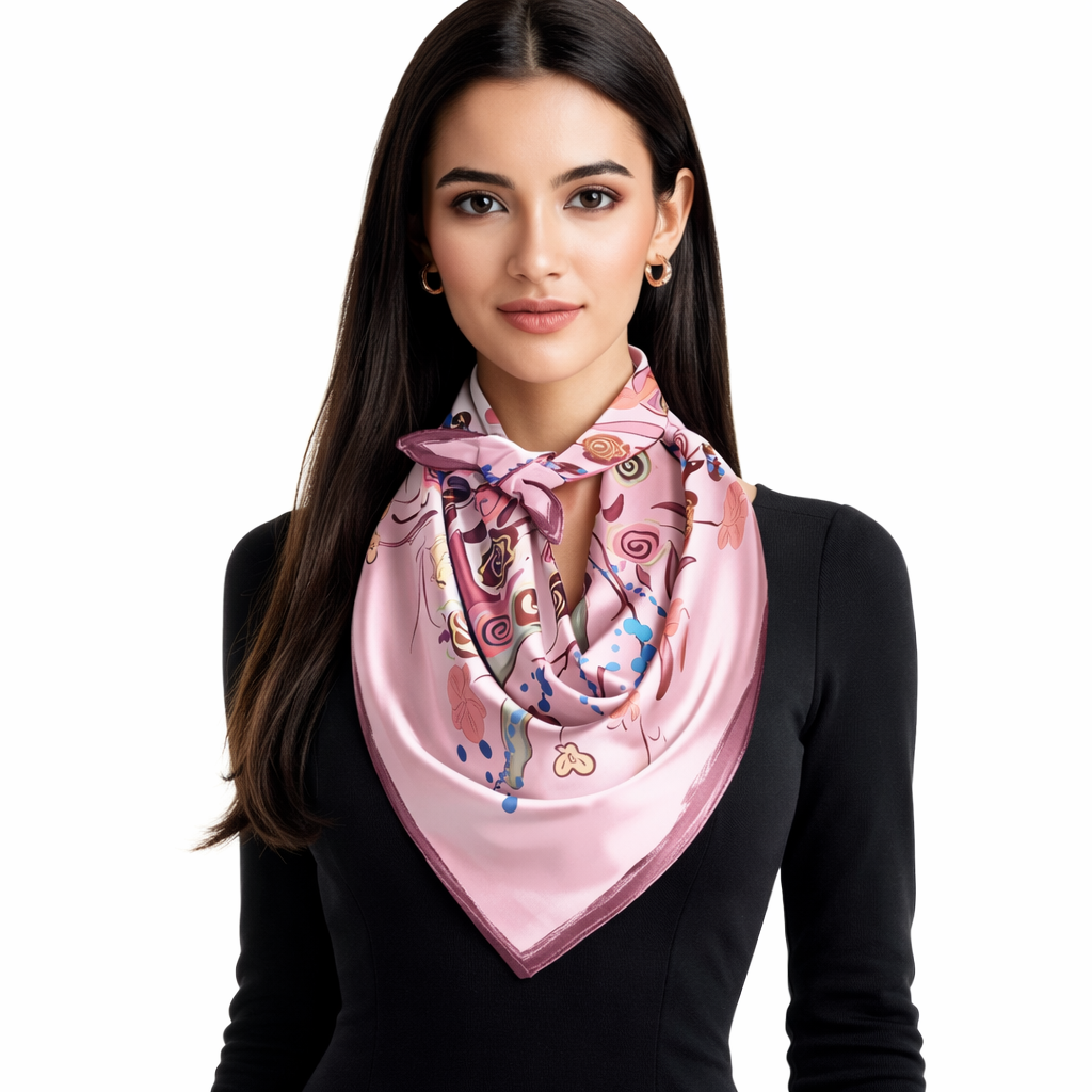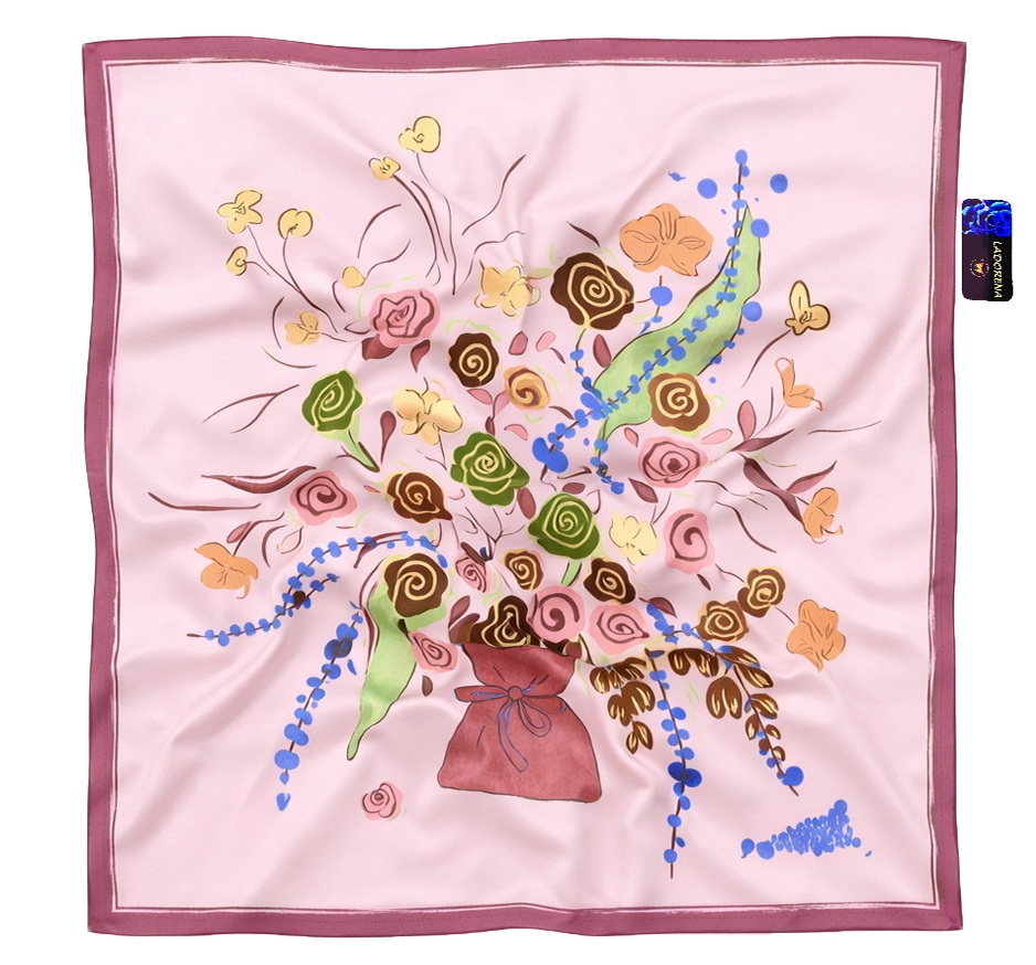 Przepiękna jedwabna chusta, marki LaDorena® wykonana z najwyższej jakości naturalnej ciężkiej satyny jedwabnej o rzadko dostępnej grubości aż 14 M/m, Wymiary 90x90 cm. Chusta zachwyci każdą elegancką kobietę.