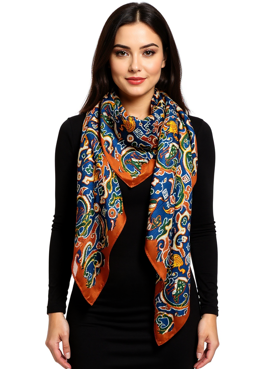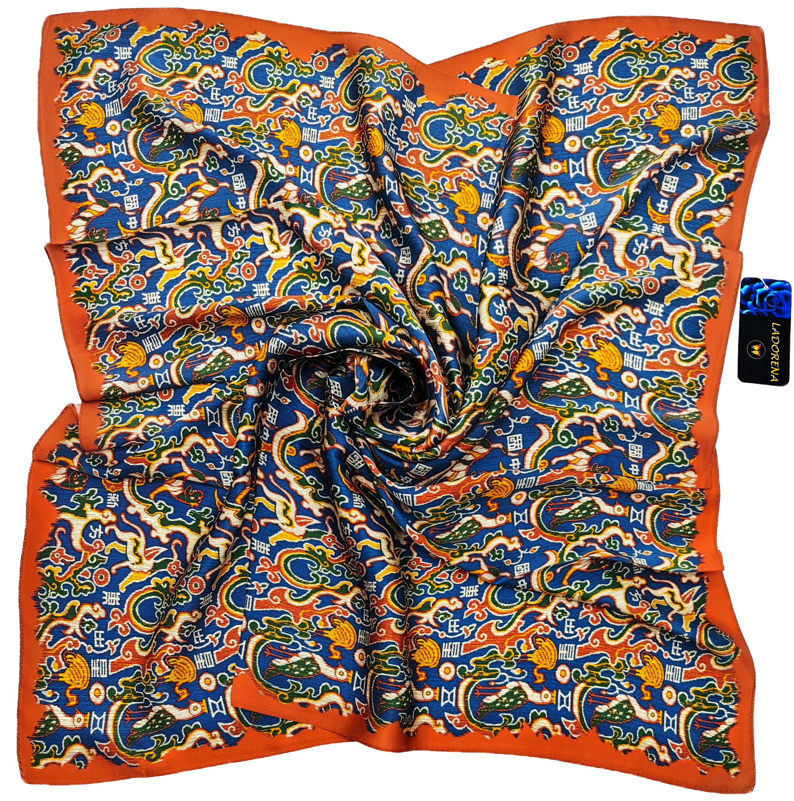 Przepiękna jedwabna chusta, marki LaDorena wykonana z najwyższej jakości naturalnej satyny jedwabnej o rzadko dostępnej grubości aż 16 M/m, Wymiary 105x105 cm. Chusta zachwyci każdą elegancką kobietę.