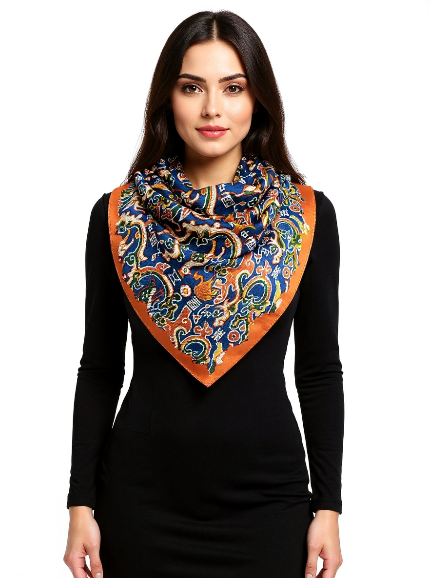 Chusta wykonana z ekologicznych tkanin. Bez sztucznych dodatków. Ręcznie wykańczana i sprawdzana. Znakomita jakość dzięki wysokiej klasy materiałom oraz kontroli jakości na każdym etapie wytwarzania. Tkanina 100% jedwab naturalny najwyższej jakości.